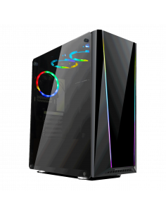 Versa T25 TG viene con dos paneles de vidrio templado en la parte delantera y la izquierda, un ventilador trasero estándar de 120 mm preinstalado y admite placas base hasta ATX.